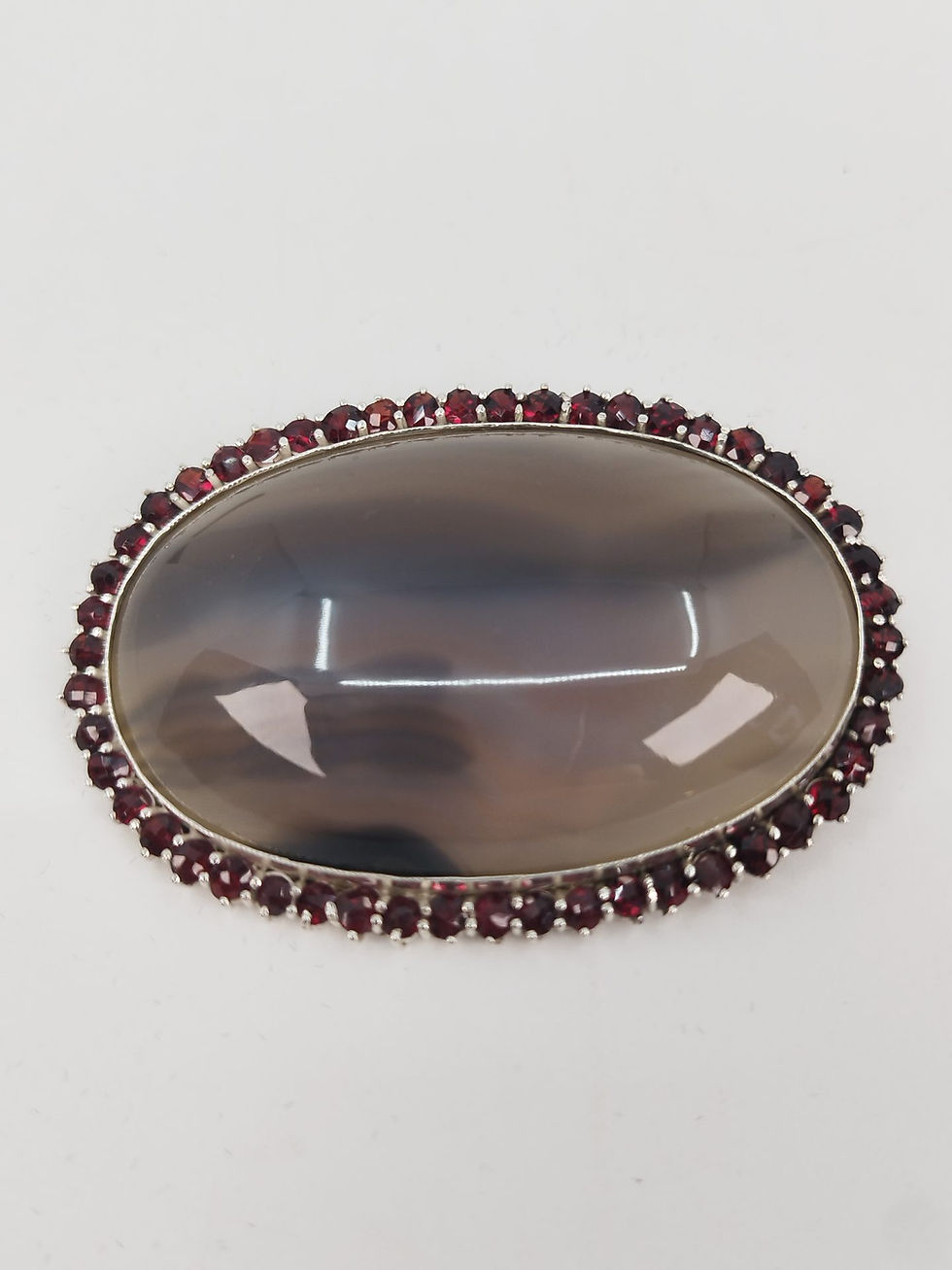 Starožitná stříbrná brož s českými granáty a achátem 1. REPUBLIKA