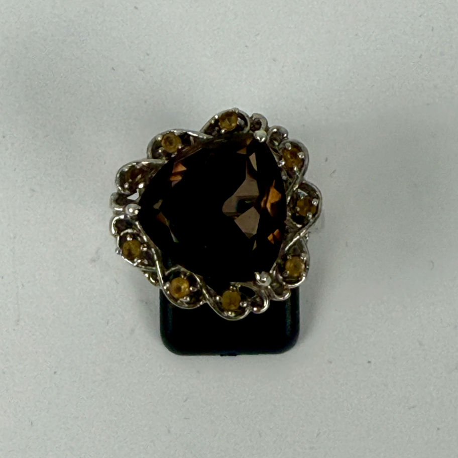 Designový stříbrný prsten je osazený 10ks přírodními broušenými záhnědami Ag 925/1000 6.90g btto velikost prstenu je 60.