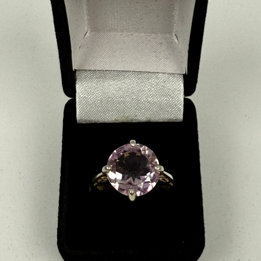 Designový stříbrný prsten osazený přírodním broušeným ametystem usazeným v prořezávané koruně Ag 925/1000 4.45g btto velikost prstenu je 59-60.