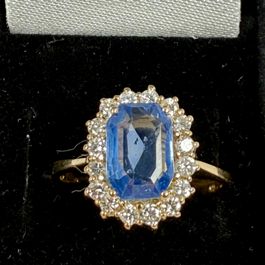 Luxusní zlatý prsten s přírodním safírem 1.5ct a brilianty 0.50 ct