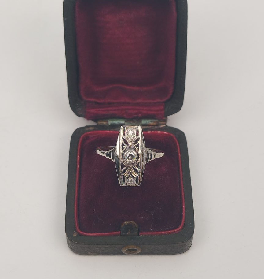 Starožitný zlatý prsten s brilianty, ART DECO