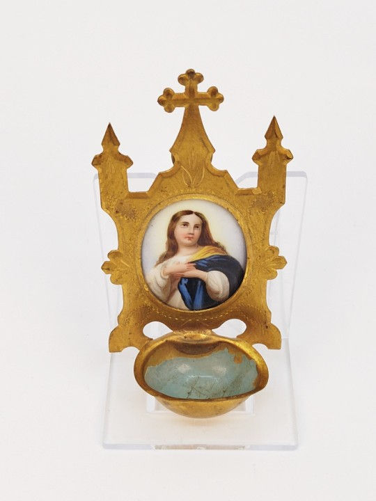 Starožitná kropenka s ručně malovanou miniaturou, Madona