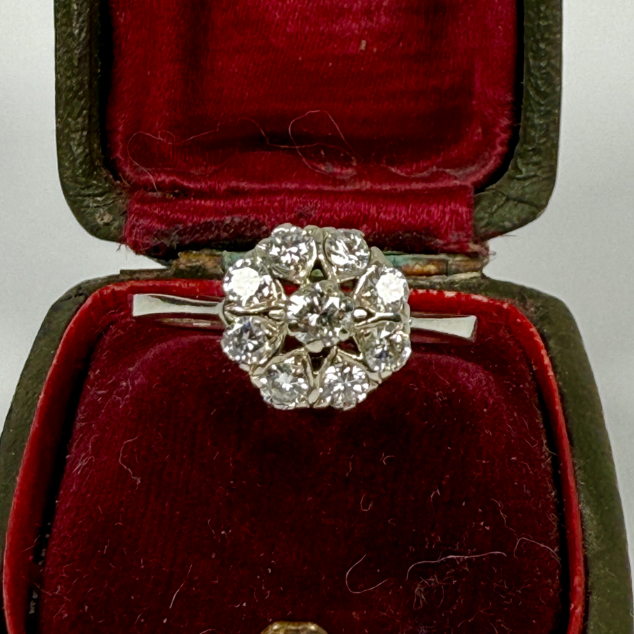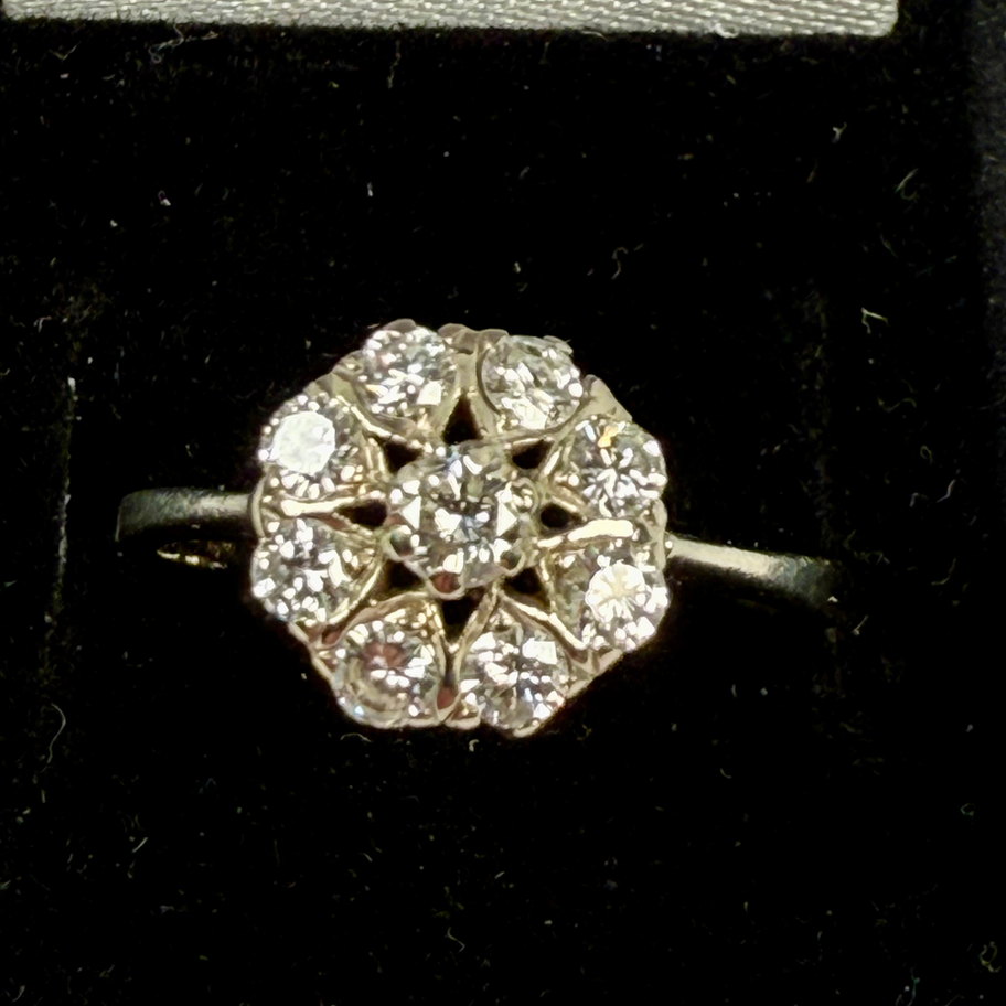 Starožitný zlatý prsten ve tvaru květiny s brilianty 0.70 ct