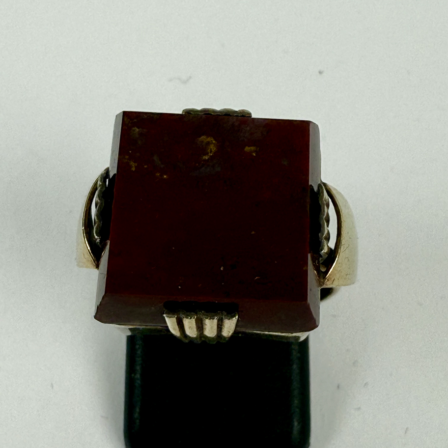 Stříbrný prsten osazený přírodním broušeným a leštěným kamenem Ag 800/1000 5.45g btto velikost prstenu je 56.